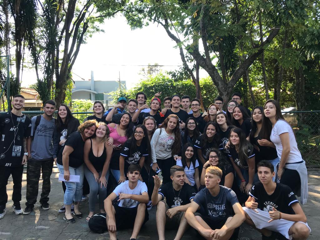 Turma do terceiro do ensino médio, eu sou o de boné vermelho